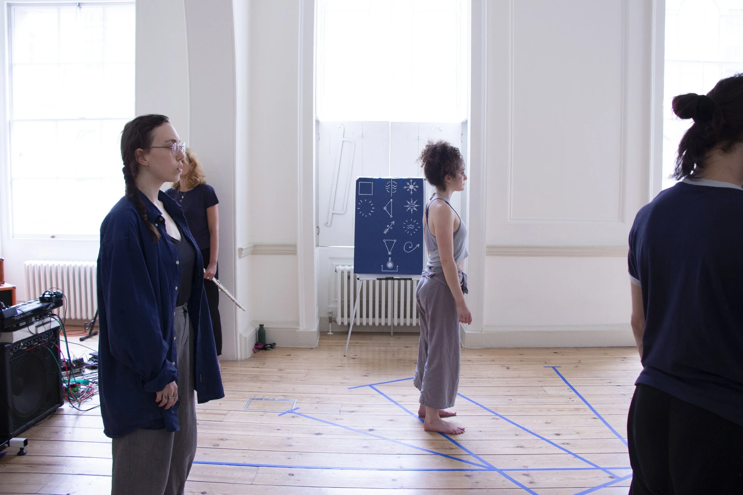 A study of ritual practice and collective art practice, as a technology to transform consciousness. A series of 12 Astrological rituals, following the ingress of the Sun into each Zodiac sign. Searching for alternatives to the aims, tools and methods of industrial art practice. Exploring the role that sound, movement and symbolic narrative, can have in supporting individual and collective transformation. Research on hypnotic phenomena within music, dance and theatrical practices. Hacking the 12 Labours in the context of 12 signs. Utilising a visual and narrative score, each Labour catalysed a dialogue between musicians, performers and audience to facilitate an immersive performance of embodied myth. Reclaiming creative practice as a return to conscious ritual and collaborative improvised creativity in the present moment. Embodying astronomical magic with sound, movement and symbolic narrative. Gesturing between worlds.